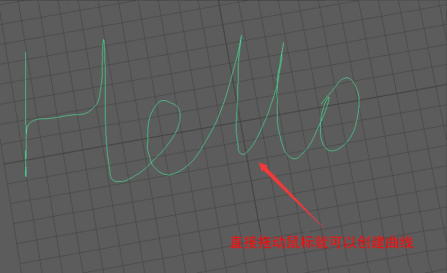 2、直接在视图窗口中拖动鼠标不松开,就可以在栅格面上创建一根曲线。按下Enter键退出铅笔曲线工具。