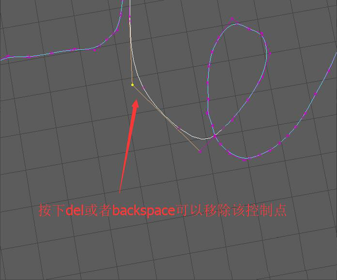 6、在编辑控制点或者编辑点模式下,选中CV控制点或者EP点,可以按下del或者backspace删除点。