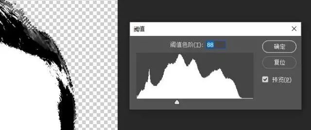 上方菜单栏图像-调整-阈值。阈值可以根据画面效果来决定,这里将图片阀值选择成88