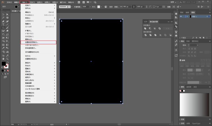 第一种是在对象-创建渐变网格。首先如图在画板上新建一个形状,这里画了一个矩形,然后对矩形添加网格。