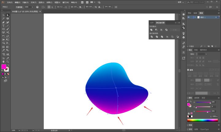 对于形状在箭头所指处添加颜色00d2,颜色061bac,然后是ff00cc。