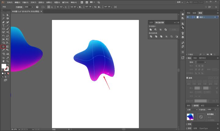 然后图形的所有锚点和手柄都可以进行调整的,扭曲变形后,色调处理的更加和谐。