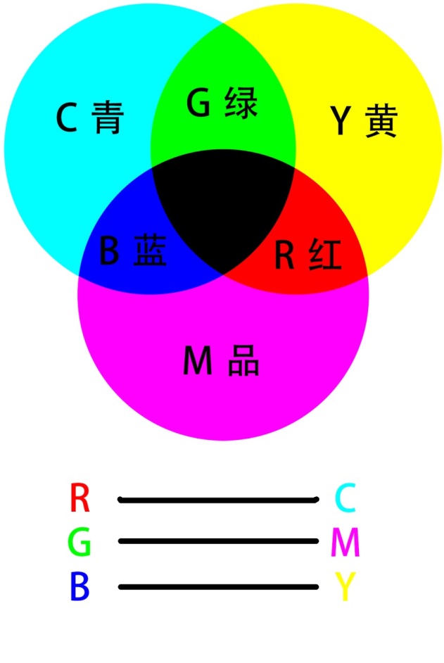 品,Yellow黄。其中青+黄=绿,青+品=蓝,黄+品=红。
