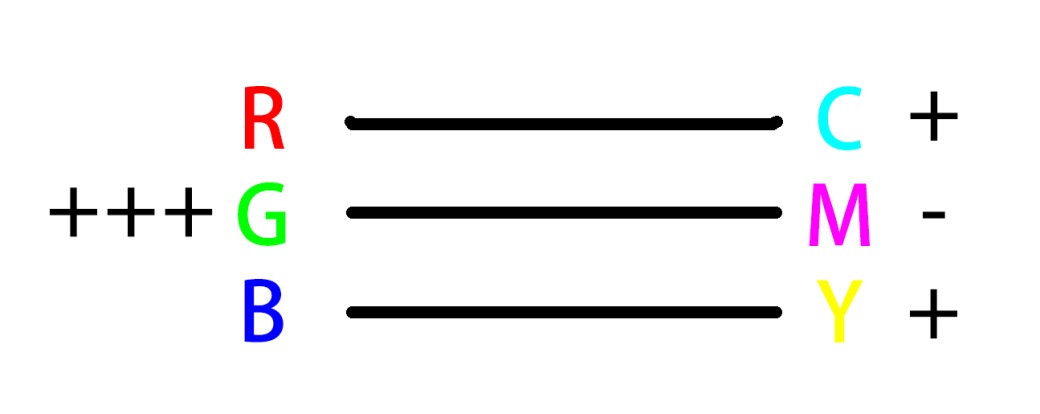色彩的纯度取决于该色中支持色成分和消色成分的比例。很多时候我们觉得色彩发灰,是因为该色中混入了大量的消色成分,导致色彩不纯。为了理解这一部分,我们先得理解物色的三原色:Cyan 青,Magenta