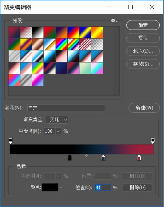3.添加渐变映射,调整渐变色标的位置,得到如下效果: