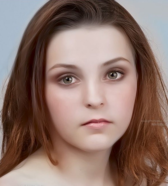 观察上图发现,五官头发什么的都模糊,没有质感。于是图层1添加蒙版,用黑色软画笔涂抹。涂抹后,效果如图