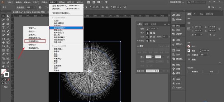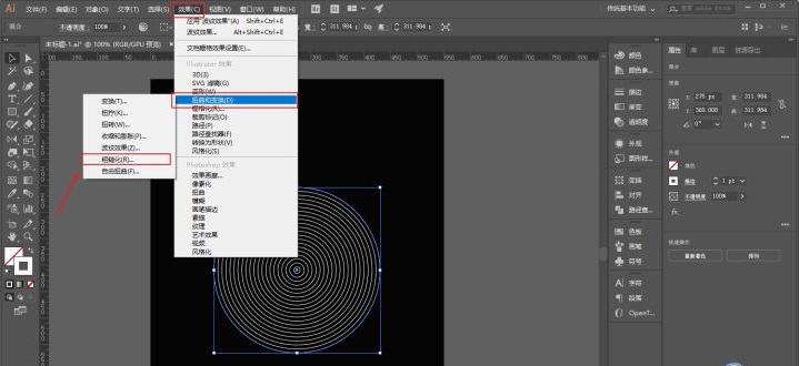 接下来就是今天内容的主角之一,选中对象执行效果-扭曲和变换。里面有很多扭曲变换的效果。不同的工具能够达到不一样的效果,我们这里选择粗糙化。