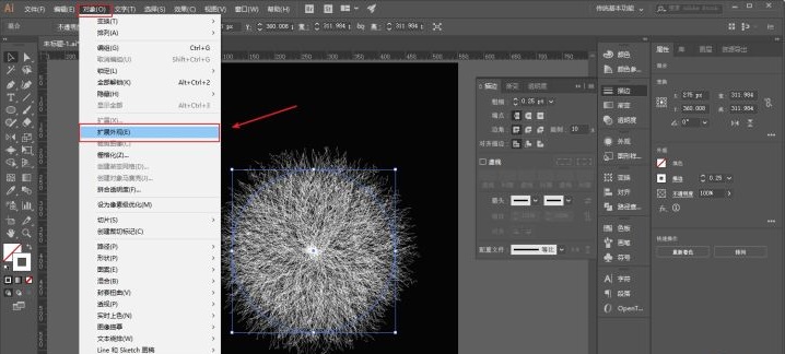 由于变形工具组实际操控的是对象的锚点和手柄。所以我们这里要先把对象扩展一下,否则的话它就只有一个圆的锚点和手柄。