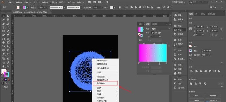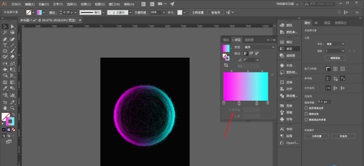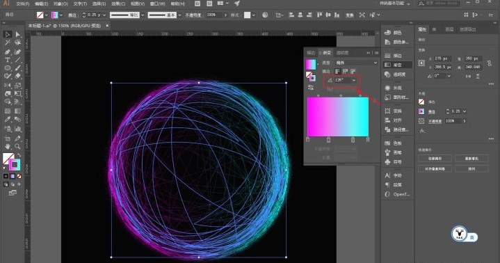 继续调整细节,选中部分对象,改变渐变的角度,让球中间的颜色看起来分布随机一点。