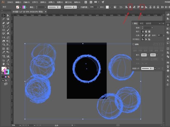 然后再全选对象,执行水平居中对齐和垂直居中对齐。