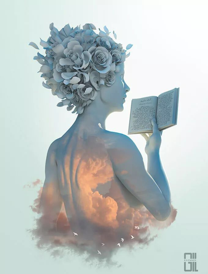 平面构图的画面通过视觉传达而产生联想,达到某种意境。联想是思维的延伸,它由一种事物延伸到另外一种事物上。