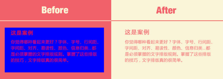 什么样的颜色才能让排版更好看?毫无疑问,经典黑白配当选冠军。为什么这样说?因为灰度颜色通常更突出。使用颜色时,要避免过高的饱和度,因为亮色字体通常会妨碍阅读。还要避免对比强烈的颜色组合,例如红底绿字。彩虹似的渐变颜色字体也最好不要选哦,世界上没有“五彩斑斓的黑色”。