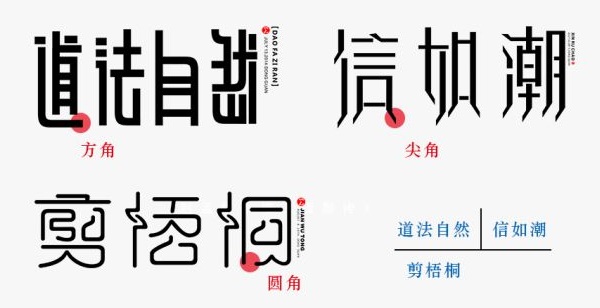 笔画相交的情况比较多,有十字相交、丁字相交、直角相交、斜角相交等等,设计字时常会在交点处进行个性化处理,这个细节处理会让字的性格更鲜明。