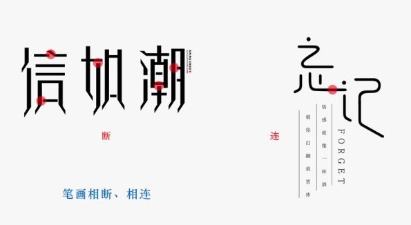 笔画相断就是本来连着的笔画做断开处理,这是设计字时常用的手法,可以根据字意和整体结构进行恰当设计。