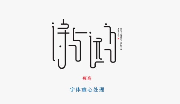 字体重心,就是字的视觉中心,一般字都是方方正正,重心适当,但为了让字不落俗套,我们可以调高或降低重心,这就是我们常见到的瘦高字或扁平字。