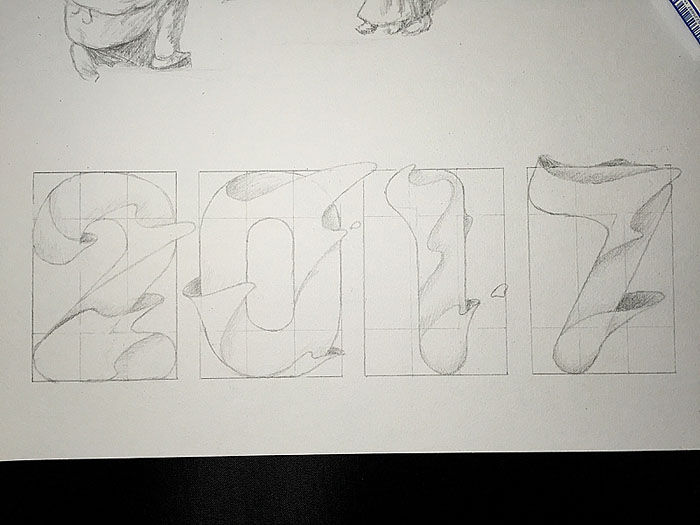 2、勾勒出黏糊糊液体的形状。建议先在纸上画一画构思一下,我是想象液体从左下角向右上喷到数字上,这样比较容易决定各处的粘连以及层次关系。