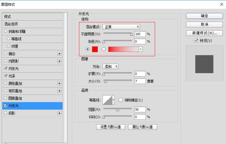 混合模式改为正常,颜色设置为红色。其他相关设置,可根据具体需要进行灵活调整。