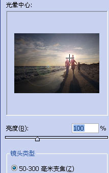 在菜单栏中打开滤镜面板,选择滤镜中的渲染>镜头光晕。通过点击光晕中心的位置,调整亮度值来达到画面的亮度对比。