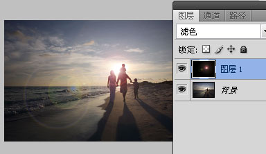 然后把图层模式更改为滤色,我们得到下图效果。每一种混合模式会产生不同的效果,比如我们通常用的正片叠底、叠加、滤色、等等大家都可以尝试着调整,找到最适合图片的方式。