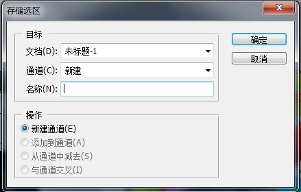 使用“存储选区”命令可以将选区存储为 Alpha 通道。执行该命令,打开“存储选区”对话框,如图所示,指定将新通道存储在当前文档或新建文档中,并为新通道命名。