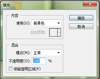 填充命令的功能与工具箱中的油漆桶工具基本相同,只不过它将一些主要的命令和选项集中在一起。如图:
