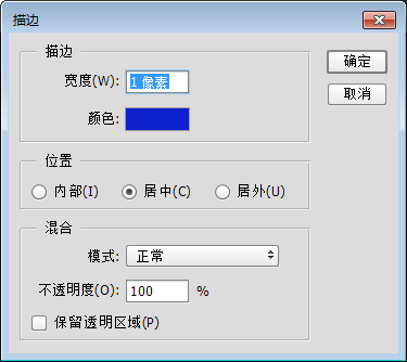 二:选择编辑>描边命令,按照下图设置。