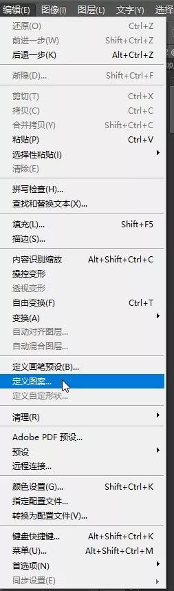 选择菜单,编辑 > 定义图案,在弹出的对话框命名,然后关闭,在新建一个文档