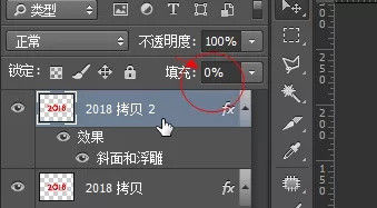 确定后把填充改为0% 按Ctrl + J 把当前图层复制一层 同样的方法清除图层样式 斜面和浮雕