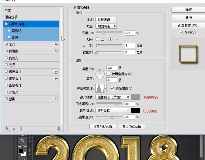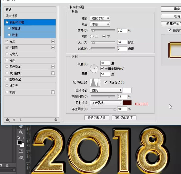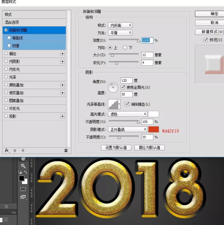 ·给当前图层设置图层样式: 斜面和浮雕