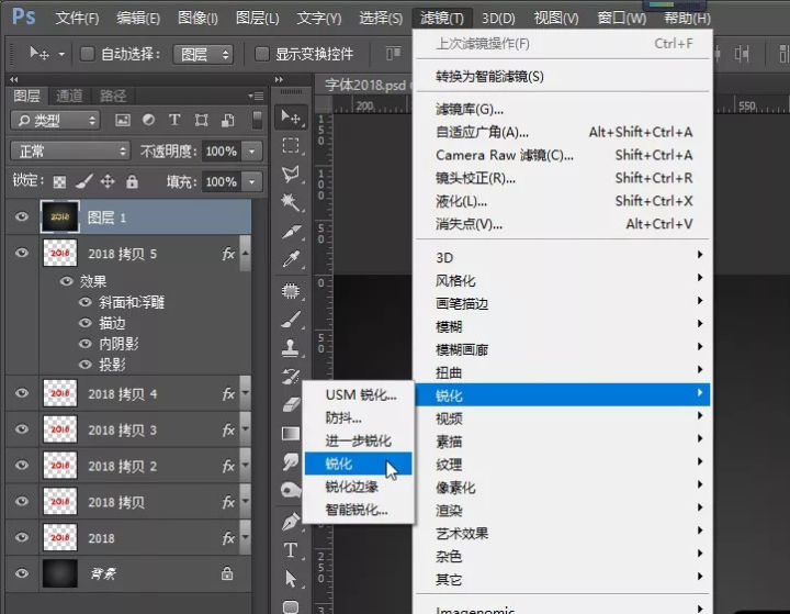 选择菜单 滤镜 > 锐化 >