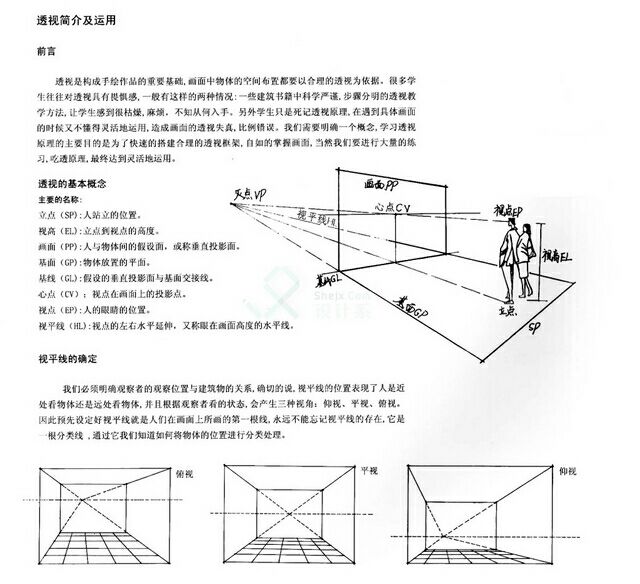 零基础的初学者,首先要过一大关:透视。在二维的纸上表现三维的空间,成功与否关键是透视是否准确。初学者学习透视可以参考手绘书籍上有关透视的内容,主要是讲视平线、灭点、一点透视、两点透视。这些内容是基本的内容,也是最重要的,初学者要结合大量的实例来理解,要重点练习来巩固透视的技法,每天练习之前也要多思考一下,多做基础透视练习。