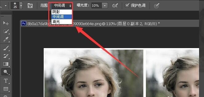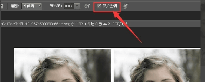 8.勾选保护色调 可以让加深或者减淡减少对其他色调的影响