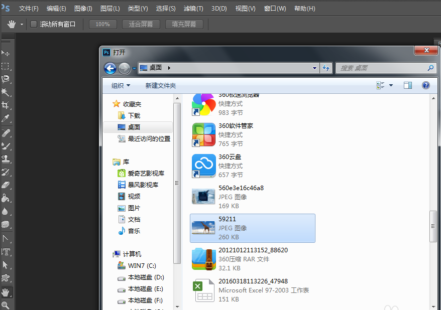 2.第二步,”文件-打开-桌面“,我们打开桌面上的一张图片
