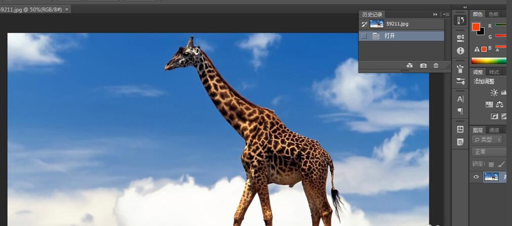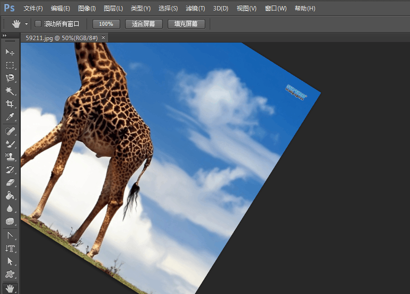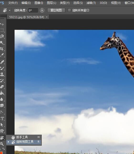 3.第三步,然后点击确定打开,然后我们就把一张长颈鹿的图片插入到ps软件中。接下来我们运用旋转视图工具进行旋转操作