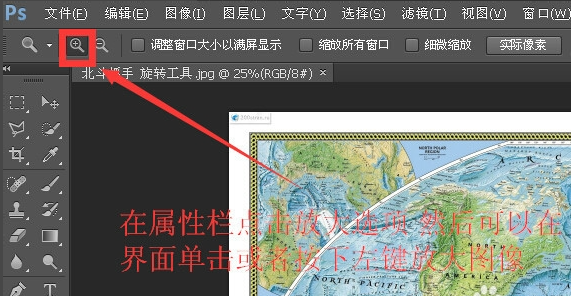 2.在属性栏点击放大选项 然后可以在界面单击或者按下左键放大图像