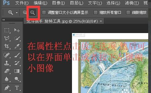3.在属性栏点击放大选项 然后可以在界面单击或者按下左键缩小图像