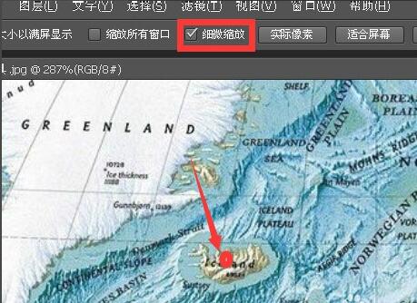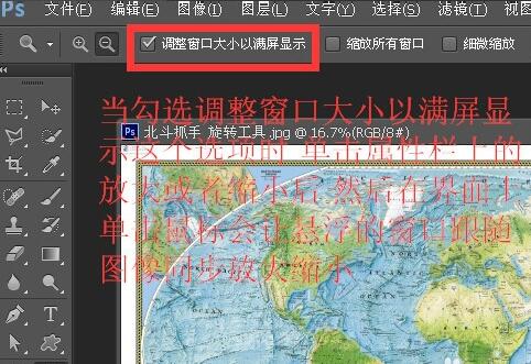 4.当勾选调整窗口大小以满屏显示这个选项时 单击属性栏上的放大或者缩小后 然后在界面上单击鼠标会让悬浮的窗口跟随图像同步放大缩小