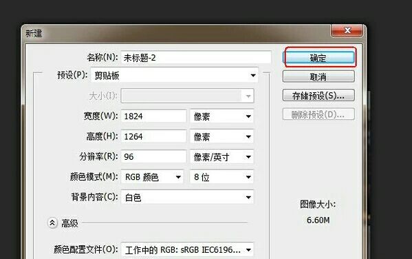 3、菜单栏:执行“文件”-“新建”命令,参数保持默认。