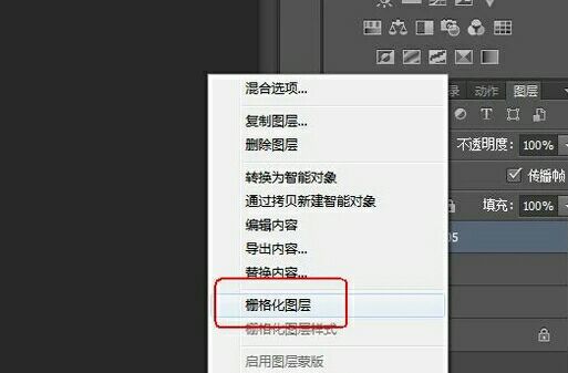 另外一种方法则是需要先打开我们编辑的那个图层(也就是我们最终将素材放入的那个图层),然后执行“文件”-“置入”命令,并载入图片。载入后,需要先回车退出“智能图层”模式。在“图层面板”上右击这个图层,选择“栅格化图层”即可。