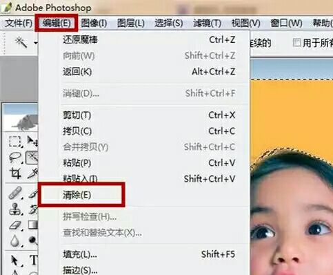 7、点击“编辑”→“清除”,即可将多余的选区清除掉。