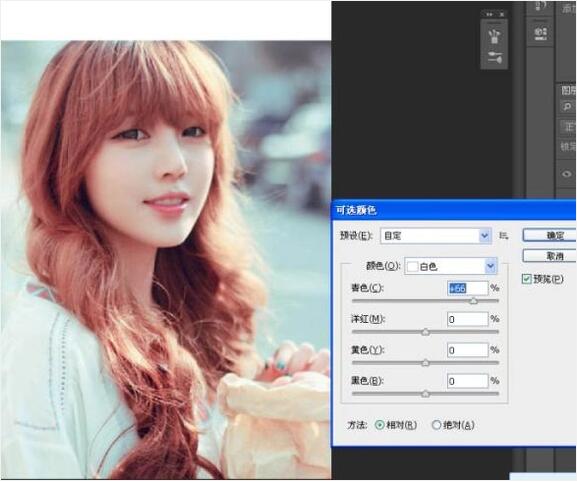 选择可选颜色,整体人物去黄,调的比较粉嫩一些。