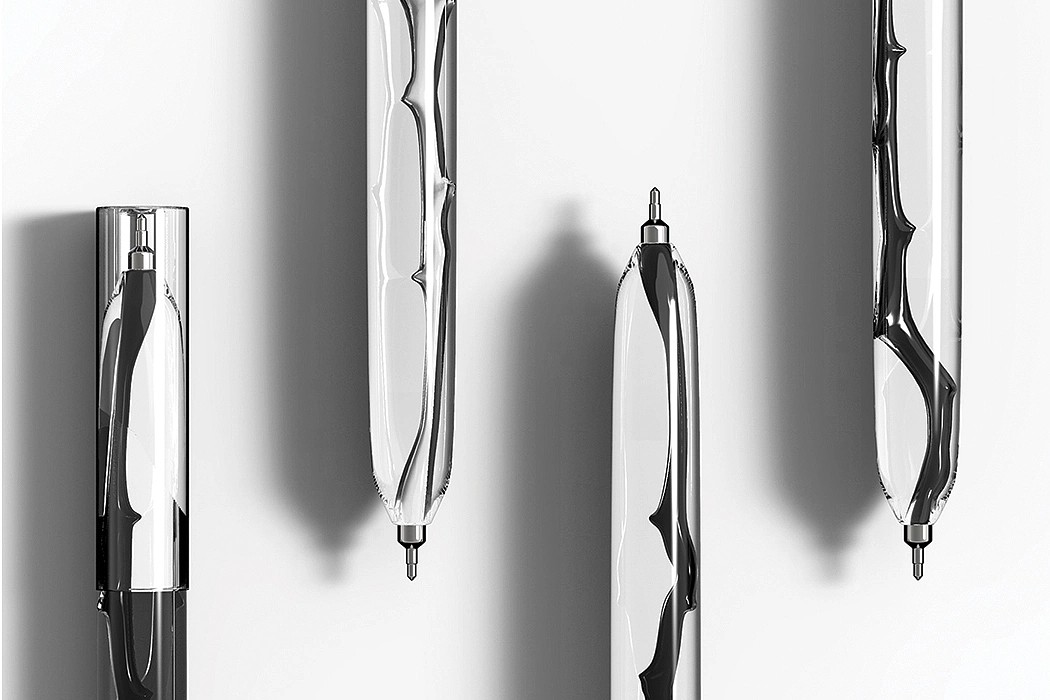 IceN 是一款钢笔文具产品设计,其设计灵感来源于大自然中的树枝,设计师巧妙的取自其形态于笔中,笔内部的每个“分支”都是唯一的,其墨水管就是树枝的形态,以其代表了环境意识与人类对可重用性的追求之间的结合。