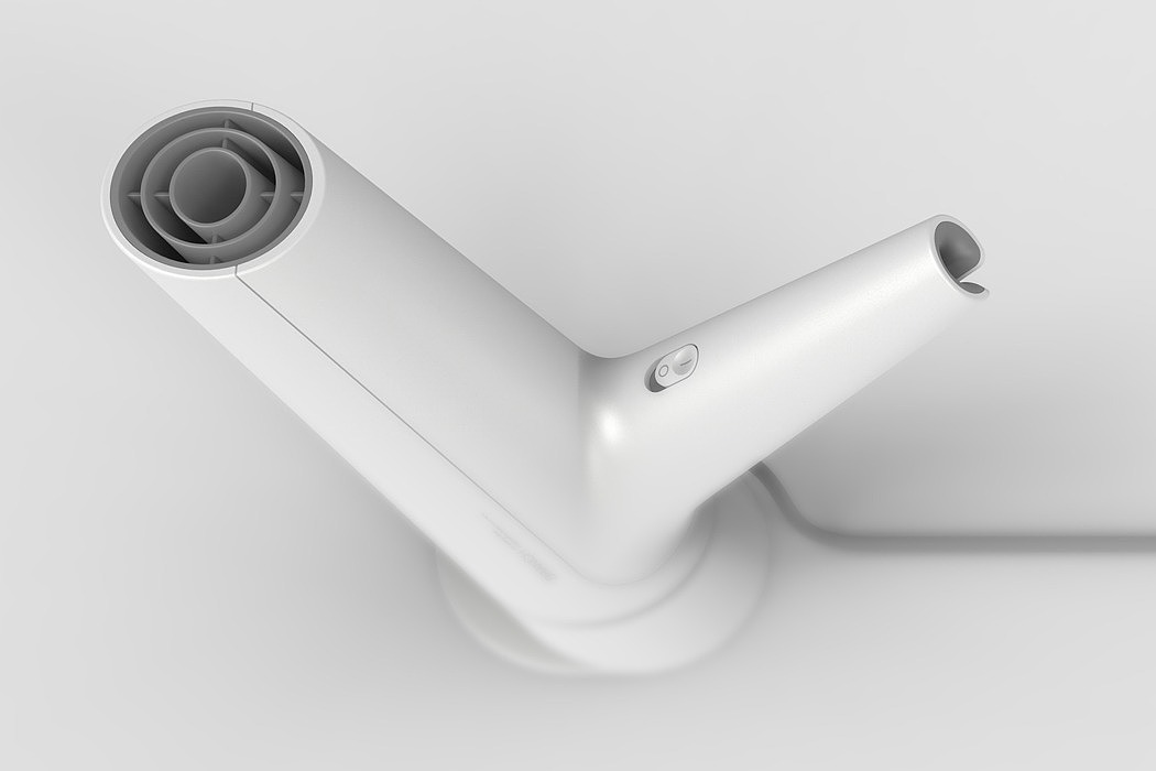 Branch 是一款创意造型的吹风机产品设计,其造型设计灵感来源于大自然中的树枝形态,整个吹风机产品造型简洁,优雅,时尚,不对称的形式通过不平衡感给用户带来全新的视觉冲击,这个吹风机优雅地放在底座上,形成了一个结实的雕塑状结构。