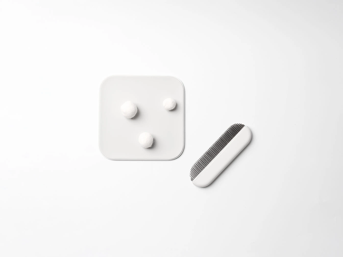 Mew Cat Care 是一款专业猫咪护理套装工具用品设计,更加注重功能性设计,其为极简主义美学设计,套装工具种类丰富且实用,包括一把刷子、一个指甲剪和一个猫薄荷容器。